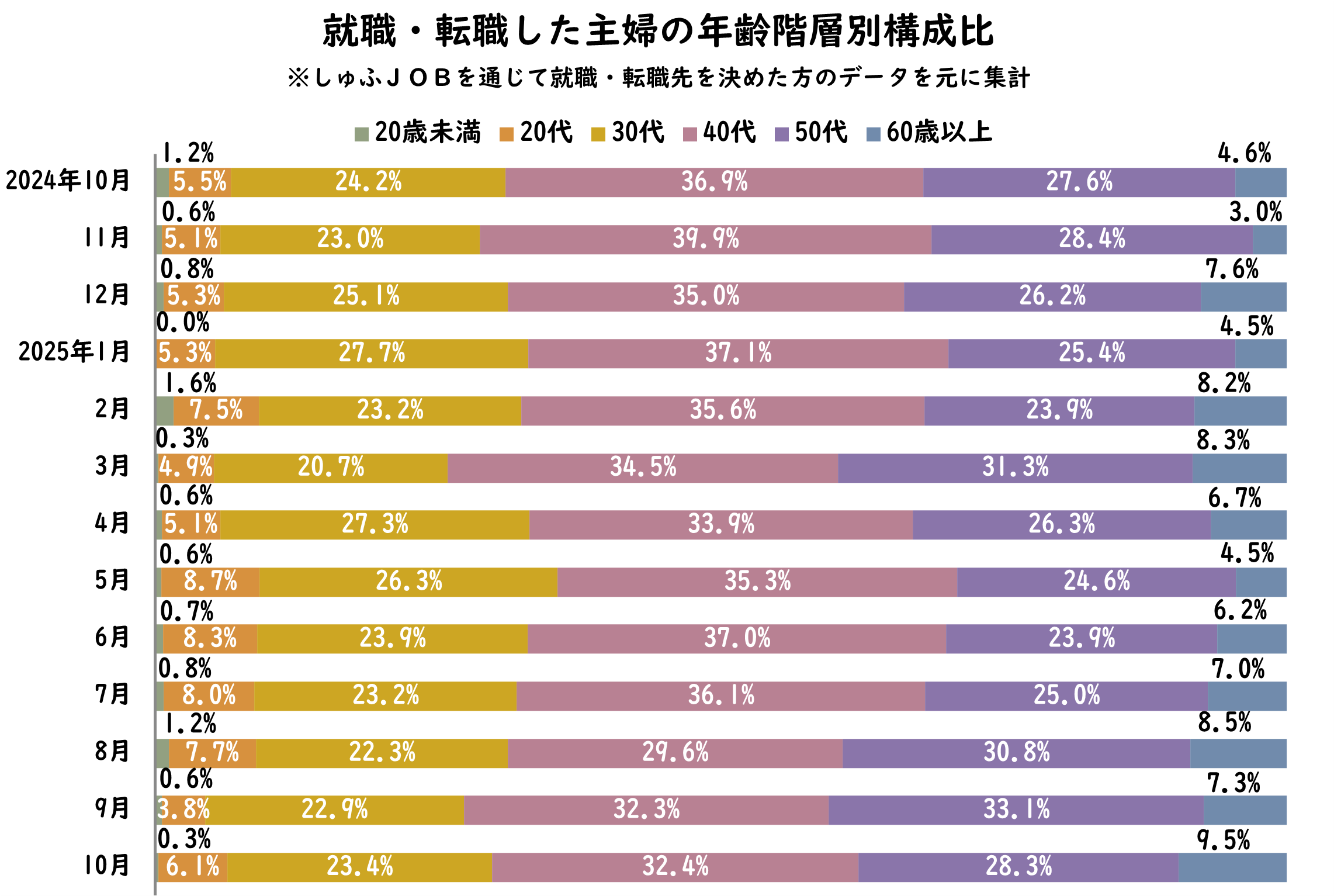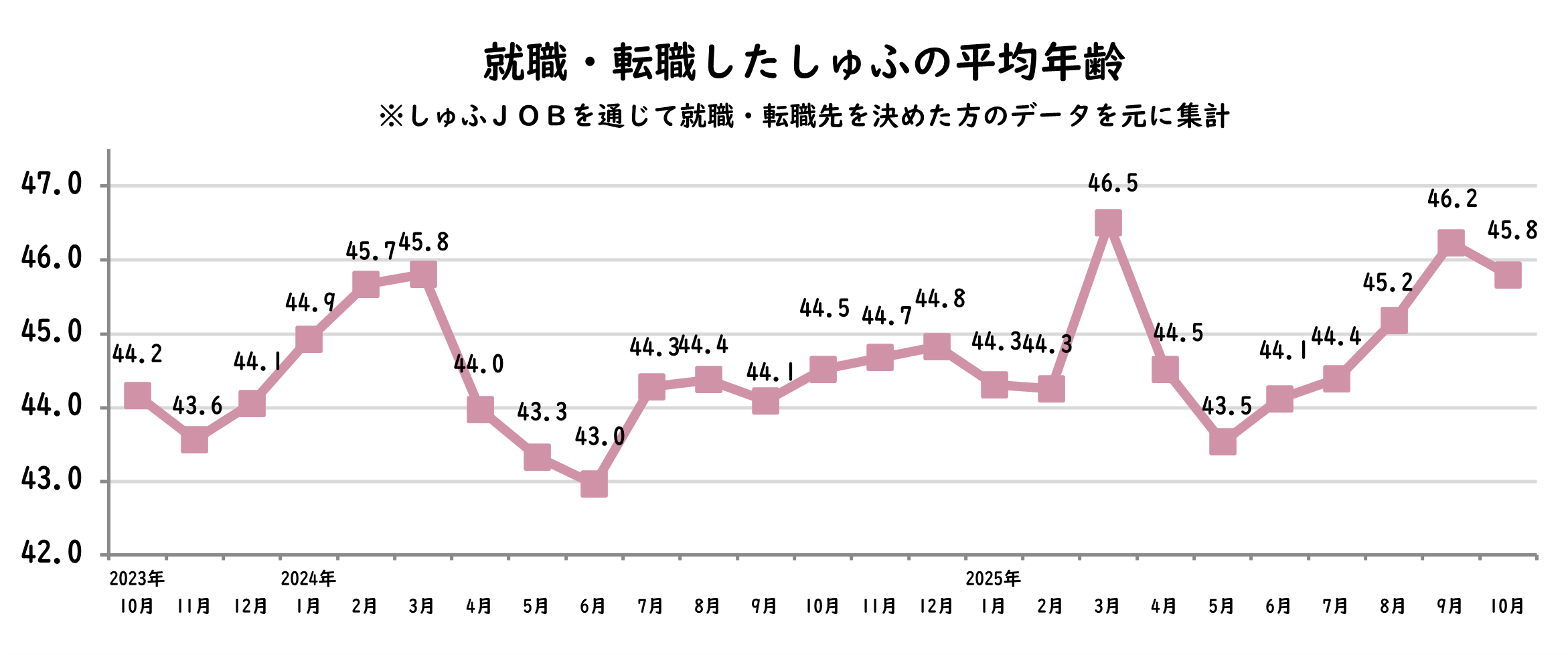 【転職しゅふの平均年齢調査 2025年10月】45.8歳(前月比-0.4歳)