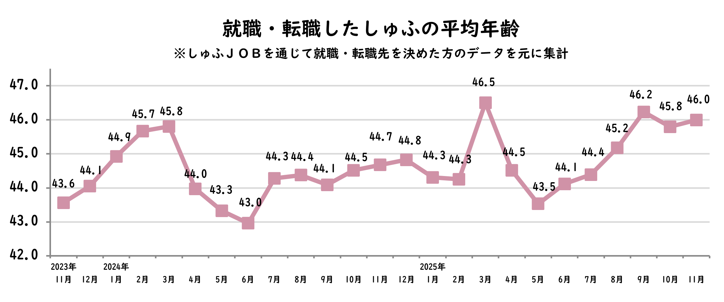 【転職しゅふの平均年齢調査 2025年11月】46.0歳(前月比+0.2歳)