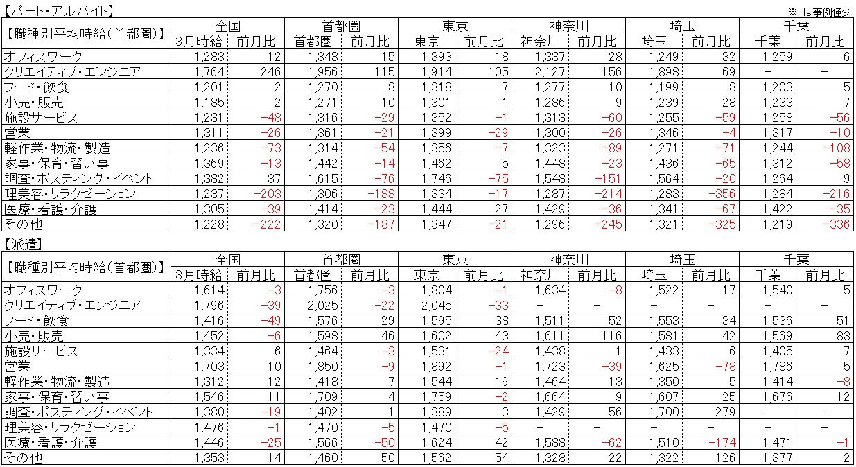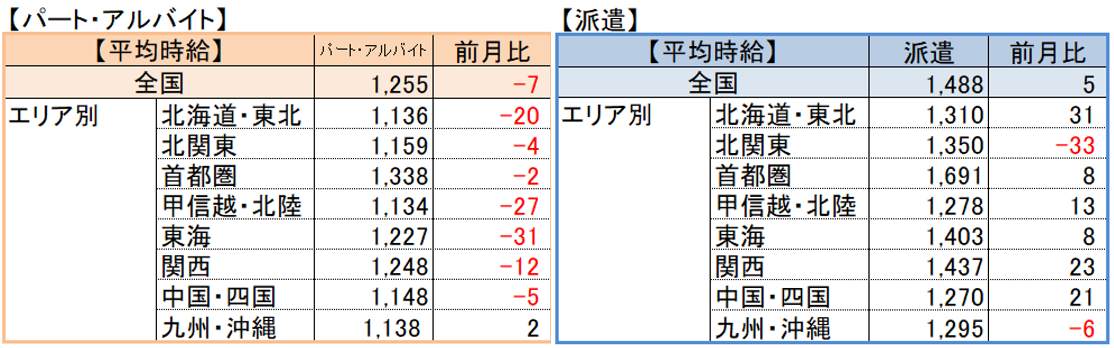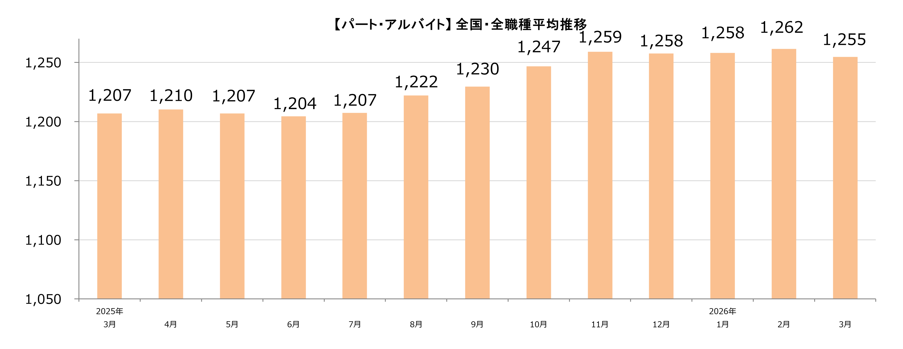 【パート・アルバイト】全国・全職種平均時給は1,255円。前月比-7円。前年同月比+48円。